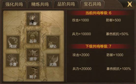 5.当所有宝石达到相同等级产生宝石共鸣,额外增加攻击、防御、兵力和爆伤抵抗